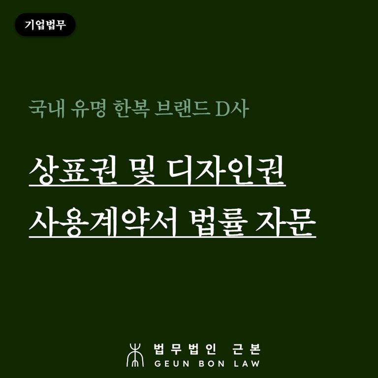 ![[국내 유명 한복 브랜드 D사] 상표권 및 디자인권 사용계약서 법적 자문](/_next/image?url=https%3A%2F%2Fd2ai3ajp99ywjy.cloudfront.net%2Fuploads%2Ftitleimage%2Foriginal%2F5b890c666696eb4a246e021f-original.jpg&w=3840&q=75)
