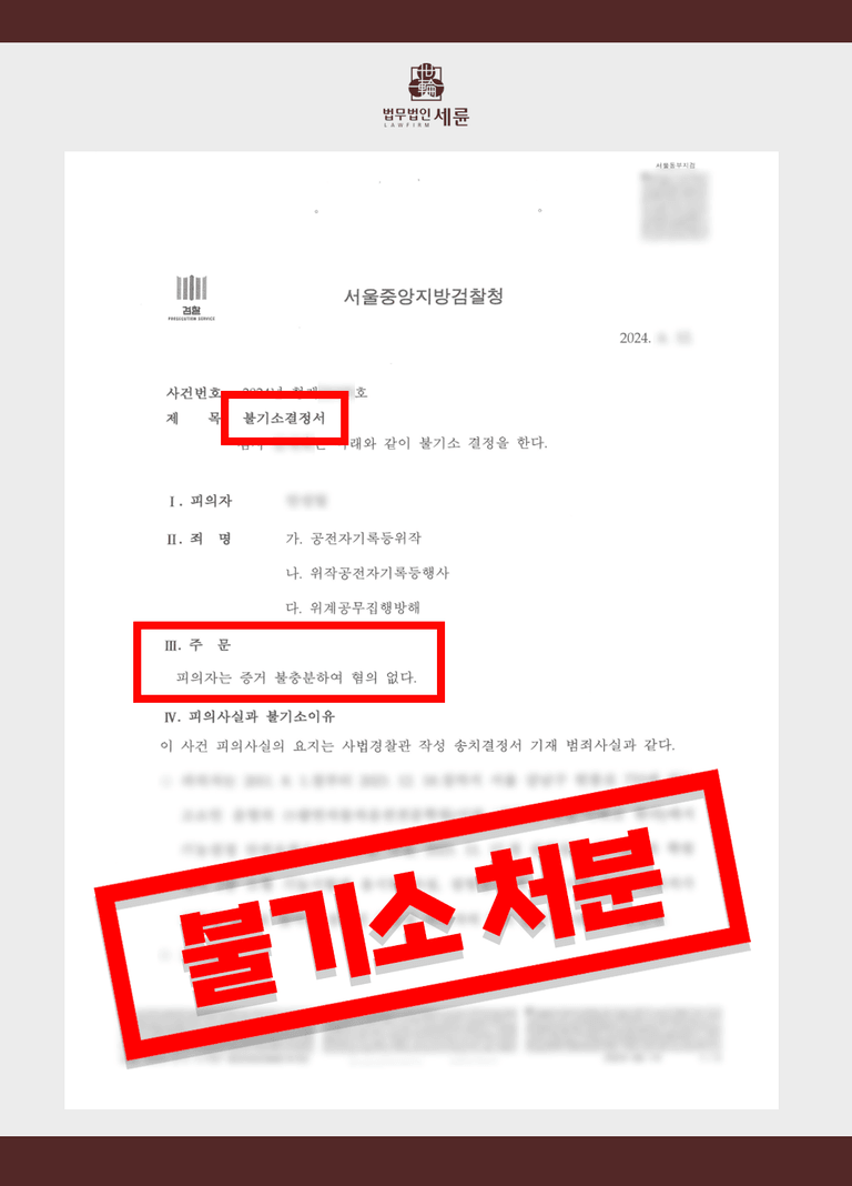 5️⃣ 로펌 세륜의 조력으로 검찰에서 뒤집혀 ⇨ 무혐의 결정