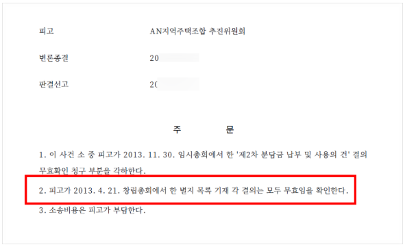 즉, 총회에서 결정된 결의가 법적으로 효력이 없다는 것을 법원으로부터 확인받는 절차라 할 수 있습니다.