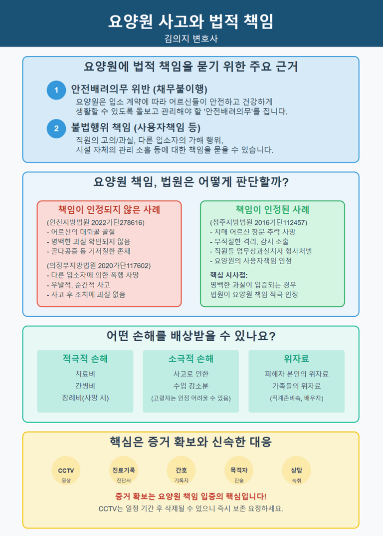 결론적으로, 요양원 사고에 대한 책임 추궁은 충분히 가능하며, 핵심은 '요양원의 과실 입증'에 있습니다.