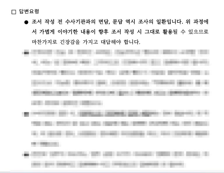 ○ 고소 시점으로부터 피의자 조사 시점까지 약 3주간 수집한 자료를 바탕으로, 1차 경찰 피의자신문을 대비하였습니다. 이 시점에서는 고소인 진술의 상세한 내용(가령, 기억이 아예 없다고 주장하는 건지, 아니면 기억이 드문드문 난다고 주장하는 건지, 고소 동기에 대해서는 어떻게 얘기하는지)이나 고소인이 제출한 증거가 무엇인지에 관하여 절차적으로 피의자 측에서는 파악할 방법이 없는 상태이기 때문에, 그야말로 예상할 수 있는 모든 차원에서 다각도로 대비하였습니다.