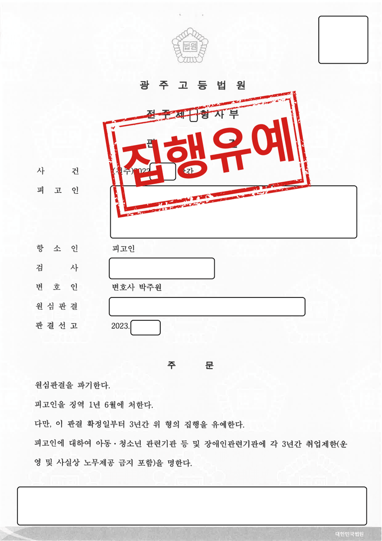 [전주 형사전문변호사] 집행유예 성공사례