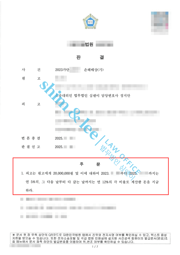 - 민사 재판부는 해당 사건으로 인해 원고가 입은 피해를 인정하였으며, 이에 따라 피고가 원고에게 2천만 원을 지급하라는 판결을 내렸습니다.