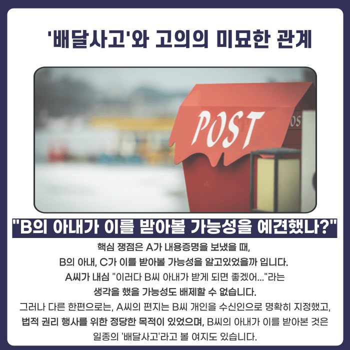 하지만 반대로 보면, 수신인은 분명 B씨로 지정되어 있었고, 법적 청구를 위한 정당한 목적이 있었다는 점에서