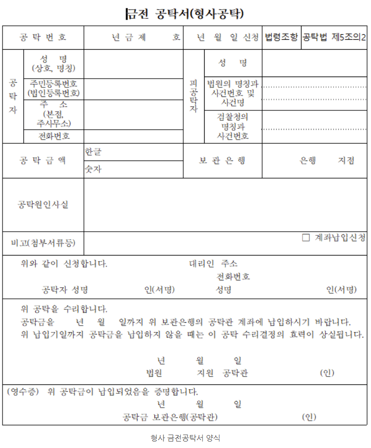 형사공탁은 일반적인 변제공탁의 일종이지만, 그 방식과 절차에는 차이가 있습니다.