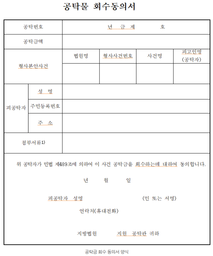 피해자가 할 수 있는 첫 번째 대응은 바로 공탁금회수동의서를 제출하는 것입니다.