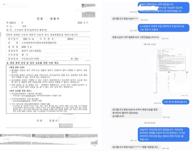 최근 스토킹처벌법위반에 관하여 불송치결정을 받았습니다. 보통 불송치통지서를 보면 이유가 2줄 정도로 간단한데 2쪽에 걸쳐 자세하게 수사관분이 써야만 했을 정도로 좀 첨예하게 다투는 포인트가 있었습니다. 제 생각으로는 스토킹범죄도 통매음 대량 고소가 발생한 그 당시처럼 어떻게 대응을 하고, 적절한 변호를 받느냐에 따라 결과가 전혀 달라지는 경향이 있지 않나 싶습니다.