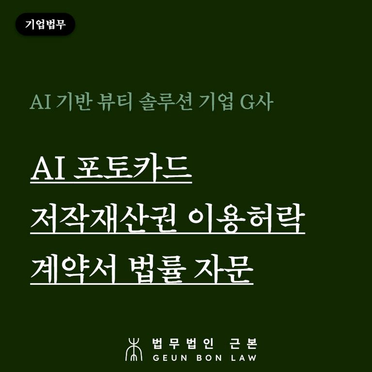 AI 기반 뷰티 솔루션 기업 G사: AI 포토카드 저작재산권 이용허락 계약서 법률 자문 수행