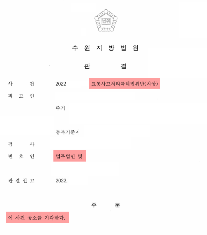 그 결과 의뢰인께서는 공소기각 판결을 받을 수 있었습니다.