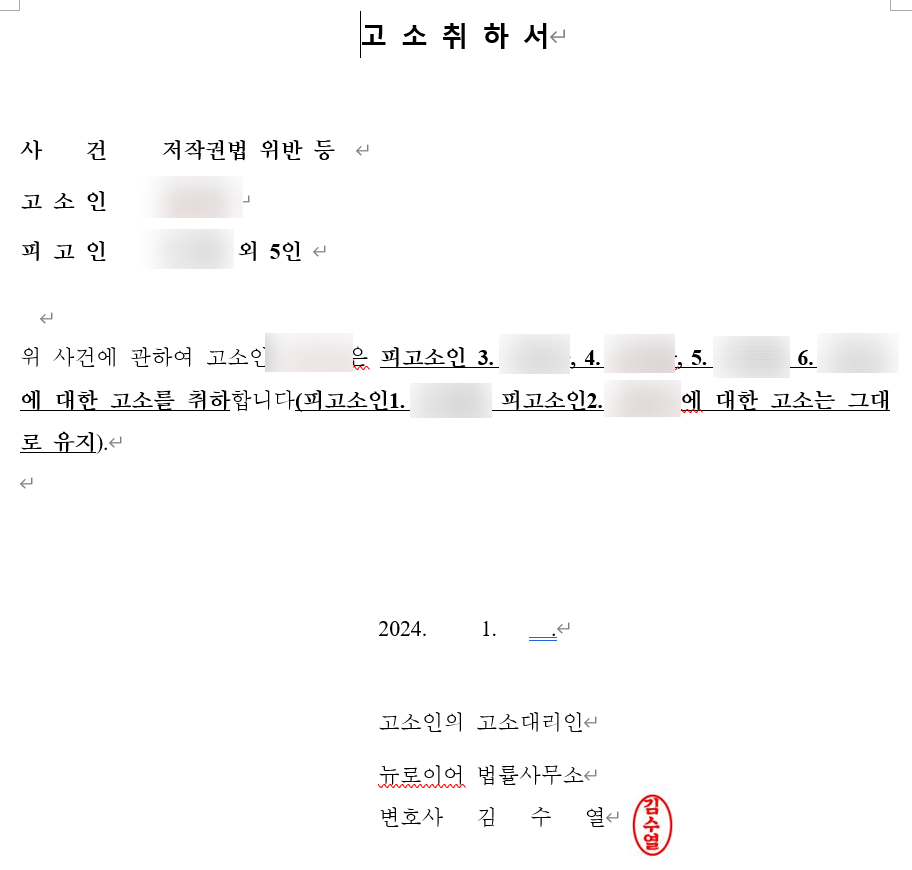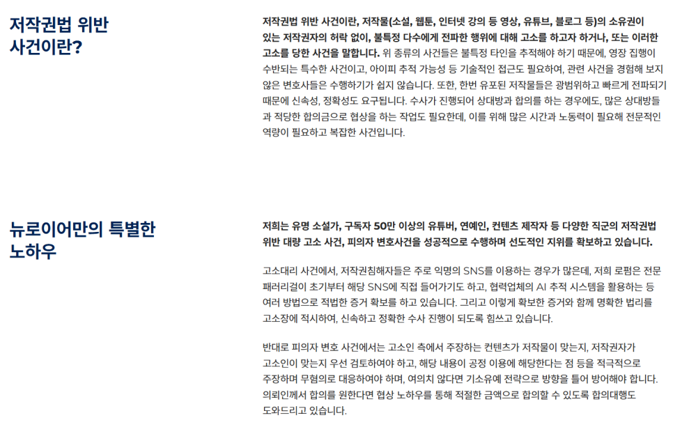 뉴로이어 법률사무소 저작권법위반 고소 설명.