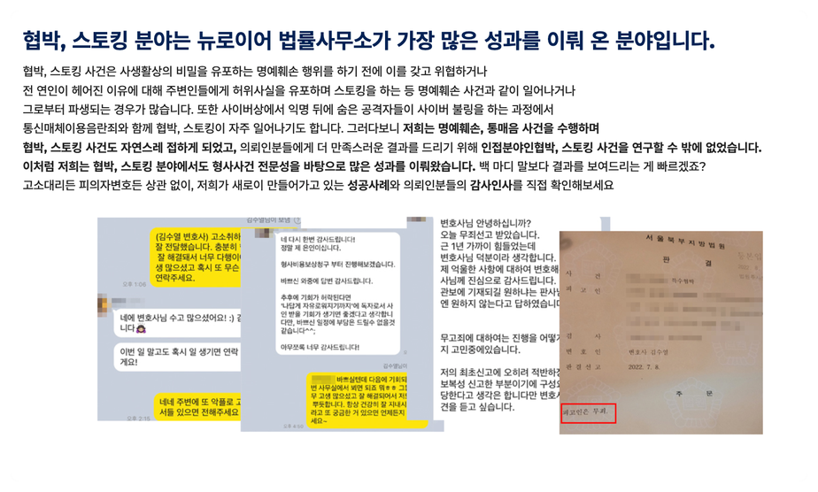 저희가 스토킹 사건을 책임지며 다수의 무혐의, 공소기각 등을 이끈 경험이 있기에 여러분들의 마음을 잘 알고 있습니다.