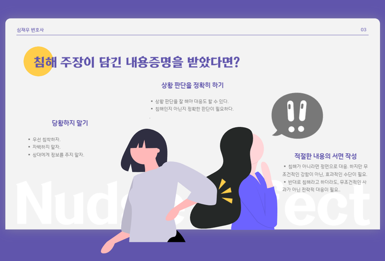 예를 들어, 침해가 아니라는 판단이 들었다면 강력히 대응해야 합니다.