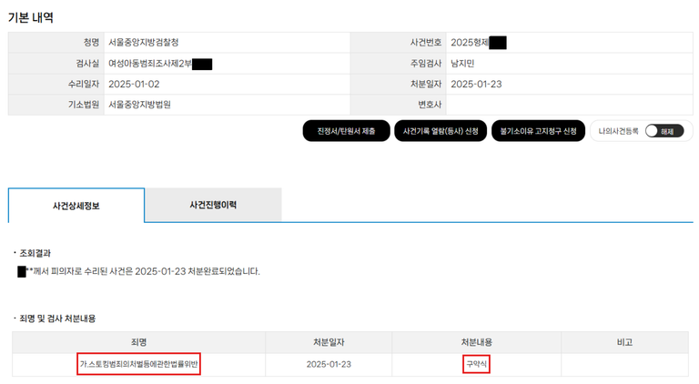이번 사건은 동일 피해자에 대해 스토킹 재범을 하였으나, 구공판이 아닌 구약식을 받은 성공사례입니다.
