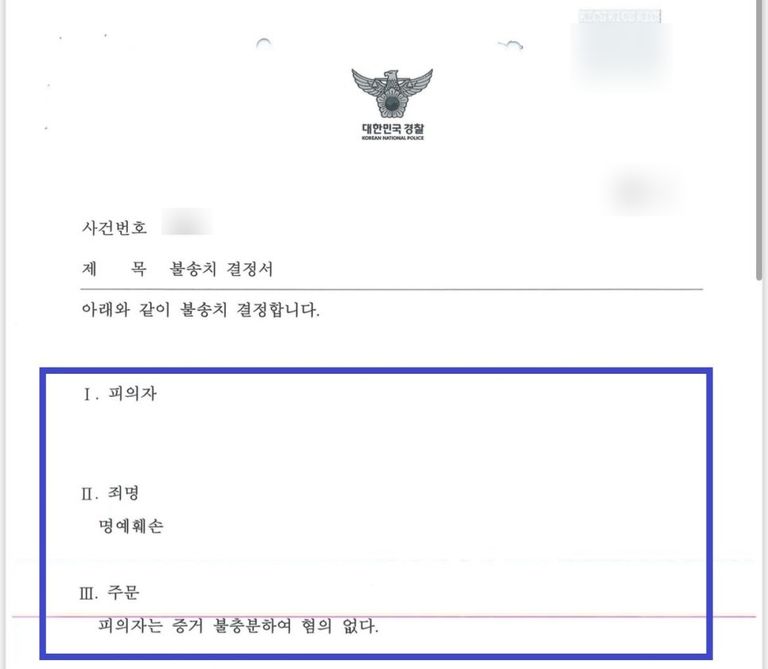 결국 이러한 주장을 받아들여, 경찰은 A씨에게 '혐의없음' 불송치 처분을 내렸습니다.