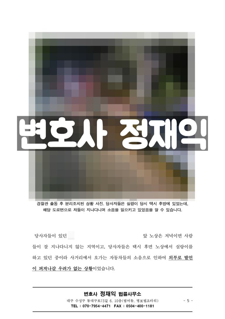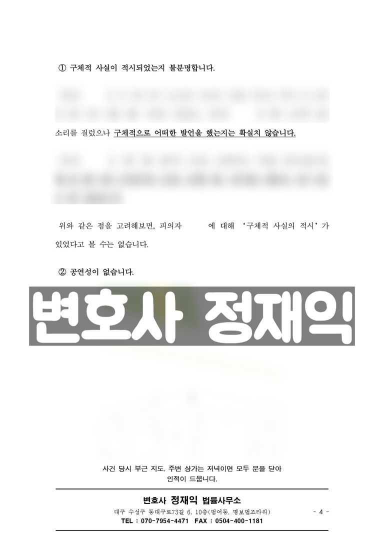 더불어 사건 발생 장소가 인적이 드물고 주변 자동차 소음이 심한 환경이었기에 명예훼손죄의 핵심 요건인 '공연성'을 충족하지 않는다는 점을 객관적으로 증명하였습니다.