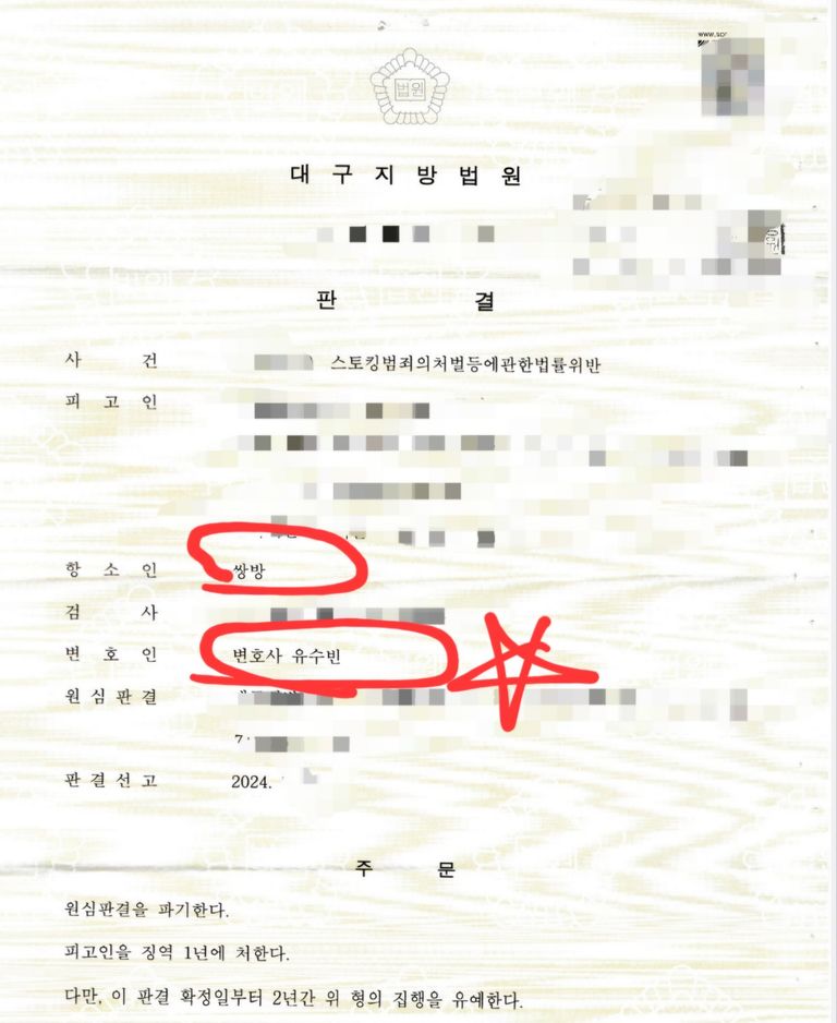 🔴 검사출신변호사, 지속되는 스토킹 혐의로 구속되었으나, 항소심에서 집행유예로 석방