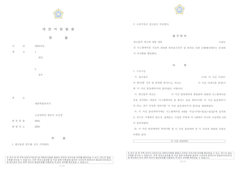 개인이 건설사를 상대로 소송을 진행하는 것이 계란으로 바위치기랑 다를 것이 없다고 느껴질 수 있는데요, 그럼에도 불구하고 치밀하게 준비한 끝에 중견기업을 상대로 승소할 수 있었습니다.