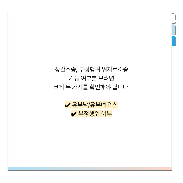 여기서 말하는 ‘부정행위’는 단순한 호감이나 썸이 아니라, 결혼생활에 큰 영향을 줄 수 있는 정신적·육체적 외도를 의미해요.