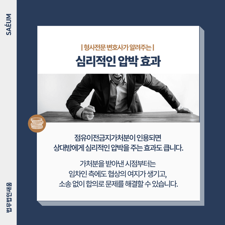 또한 점유이전금지가처분이 인용되면 상대방에게 심리적인 압박을 주는 효과도 큽니다. 가처분을 받아낸 시점부터는 임차인 측에서도 협상의 여지가 생기고, 소송 없이 합의로 문제를 해결할 가능성이 열리게 됩니다.