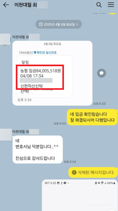 그 결과 의뢰인 세 분 모두가 2025년 4월 8일자로 피해금 총액 약 3억 원을 실제로 회수하게 되었습니다.