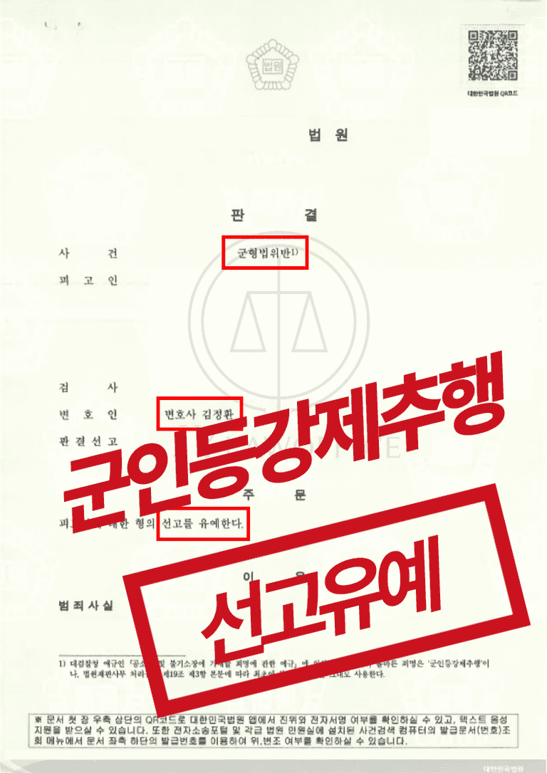 이와 같은 본 변호사의 노력으로, 의뢰인은 군인등강제추행 사건에서 선고유예 판결을 받으며, 사건을 무사히 종결시킬 수 있었습니다.