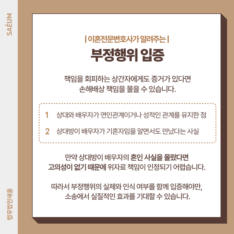 둘째, 상대방이 배우자가 기혼자임을 알면서도 만났다는 사실을 확인해야 합니다.