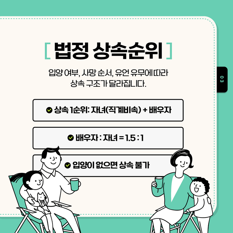 또한, 사망한 순서, 입양 여부, 유언장 존재 유무에 따라 재산 분배 결과가 크게 달라질 수 있습니다.