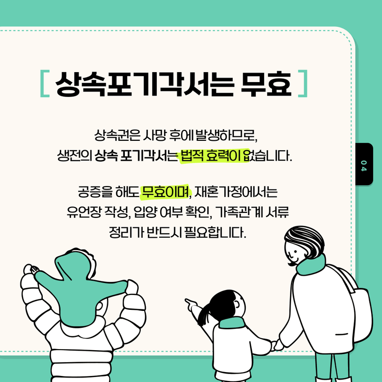 많은 분들이 재혼 과정에서 자녀들과의 갈등을 우려해, 상속 포기 각서를 받아두려 합니다.
