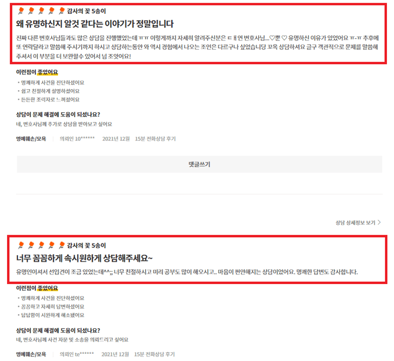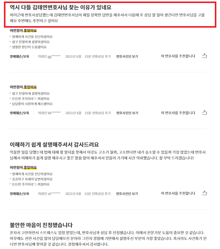 [전국에서 찾는 변호사, 유명인들의 전담 김태연 대표변호사님 상담 후기,