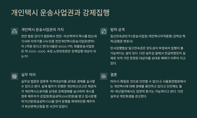 파산 아이디어10(개인파산관재인21계명/등기부인/개인택시강제집행