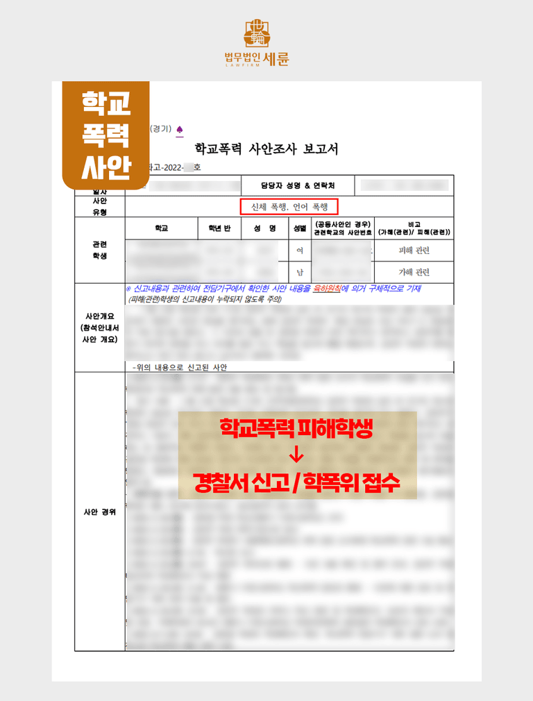 세륜이 심의위원장으로 참여했던 이 사건은 분명한 신체폭행과 언어폭력으로 '학폭'에 해당했고, 곧이어 학폭 심의위원회가 열리게 되는데요. 더하여 피해학생 T는 경찰서에 2주 상해진단서를 제출하며, 가해학생을 폭행죄로 신고하게 됩니다.