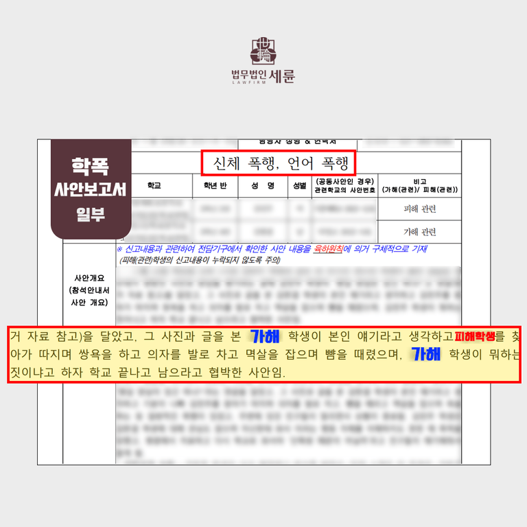 🚨법무법인 세륜 이태훈 대표변호사는 (現)성남/ (前)시흥 학폭위원회 위원으로 활동하며 경험한 사례를 바탕으로 소년범죄 및 학교폭력사건을 담당하고 있습니다. 실제 학교폭력위원회 심의를 하면서 겪은 사례들을 각색하여 공유하고 있습니다.