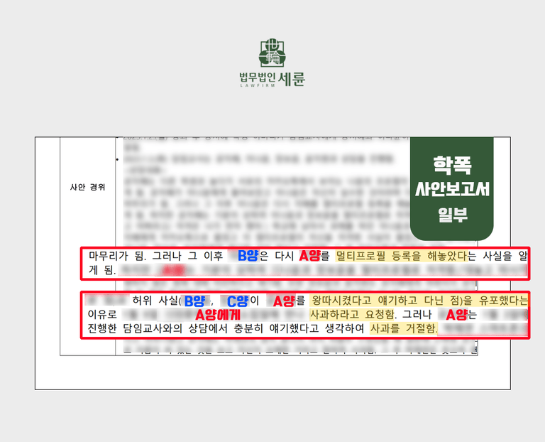 🚨법무법인 세륜 이태훈 대표변호사는 (現)성남/ (前)시흥 학폭위원회 위원으로 활동하며 경험한 사례를 바탕으로 소년범죄 및 학교폭력사건을 담당하고 있습니다. 실제 학교폭력위원회 심의를 하면서 겪은 사례들을 각색하여 공유하고 있습니다.