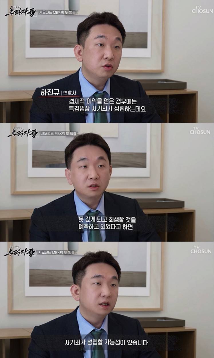 이와 관련하여 ‘TV조선 탐사보도 추적자들 – 사모펀드 MBK의 두 얼굴’ 편의 인터뷰를 진행하였습니다.