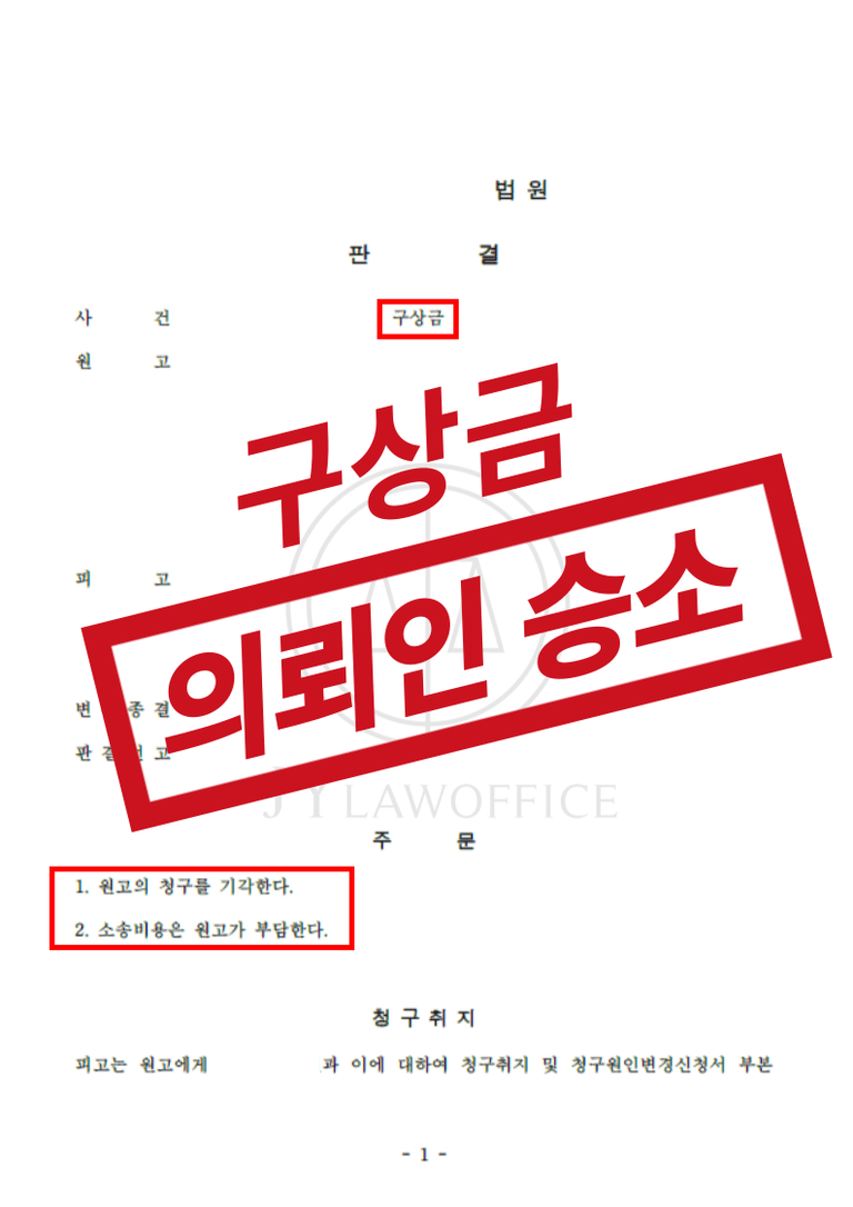 [성공사례] 구상금 - 원고 청구 기각, 의뢰인 승소