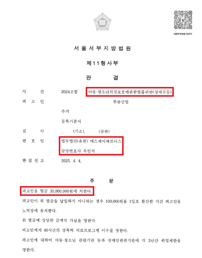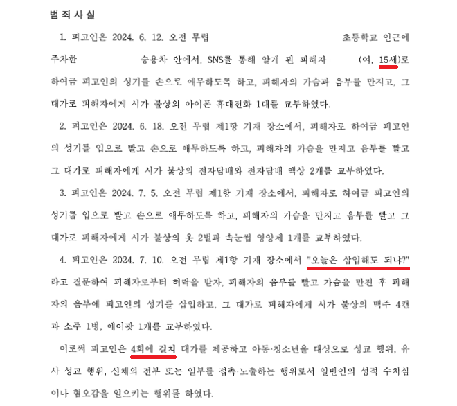공인중개사 A씨는 트위터에서 알게 된 15세 여중생 B양과 조건만남을 하기로 약속하고, 유사성행위 3회, 성행위 1회 등 총 4회에 걸쳐 아동·청소년의 성을 사는 행위를 하였습니다.