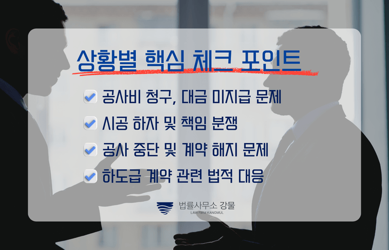 건설업의 구조와 실무를 잘 아는 변호사의 전략적 접근이 필요합니다.