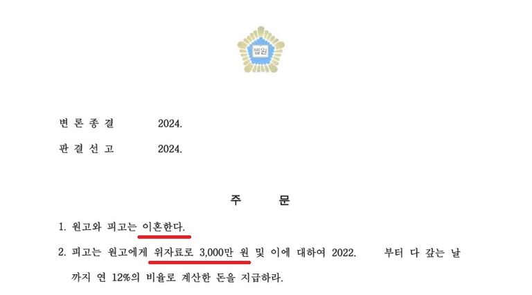 인한 유책 사유로 이혼소송을 진행했던 내용입니다.