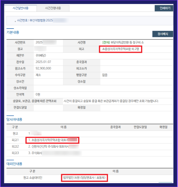 이에 따라 의뢰인은 충분한 법률적 검토를 거친 뒤, 초읍성지곡 지역주택조합을 상대로 최동욱 변호사를 통해 민사소송을 제기하게 되었습니다.