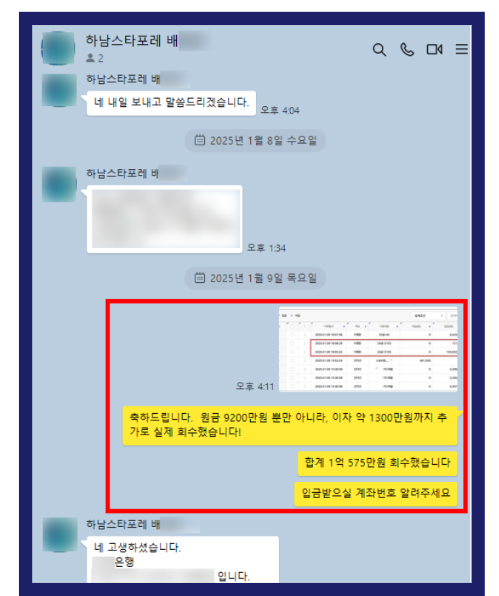 총 1억 570만원 실제 회수 성공사례 (원금 9,270만원 전액 및 이자 1,300만원)