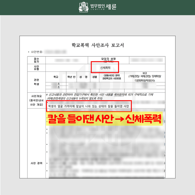 🚨법무법인 세륜 이태훈 대표변호사는 (現)성남/ (前)시흥 학폭위원회 위원으로 활동하며 경험한 사례를 바탕으로 소년범죄 및 학교폭력사건을 담당하고 있습니다. 실제 학교폭력위원회 심의를 하면서 겪은 사례들을 각색하여 공유하고 있습니다.