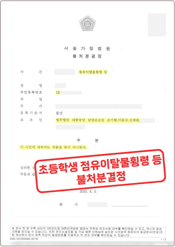 ![[🔹소년범죄] 점유이탈물횡령 등 초등학생, 불처분결정 성공사례](/_next/image?url=https%3A%2F%2Fd2ai3ajp99ywjy.cloudfront.net%2Fuploads%2Ftitleimage%2Foriginal%2F5b4c5b380298478e555bb605-original.jpg&w=3840&q=75)