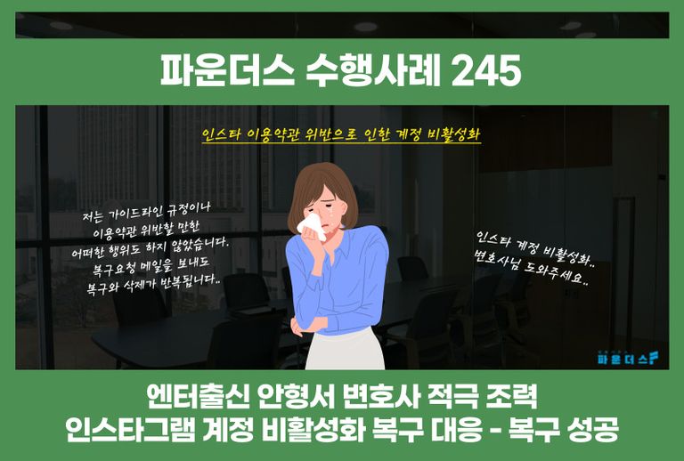 수십 수백만명의 인스타 계정을 운영해오던 중 갑작스레 비활성화되어 법적 조력을 요청주시는 분들이 많습니다.