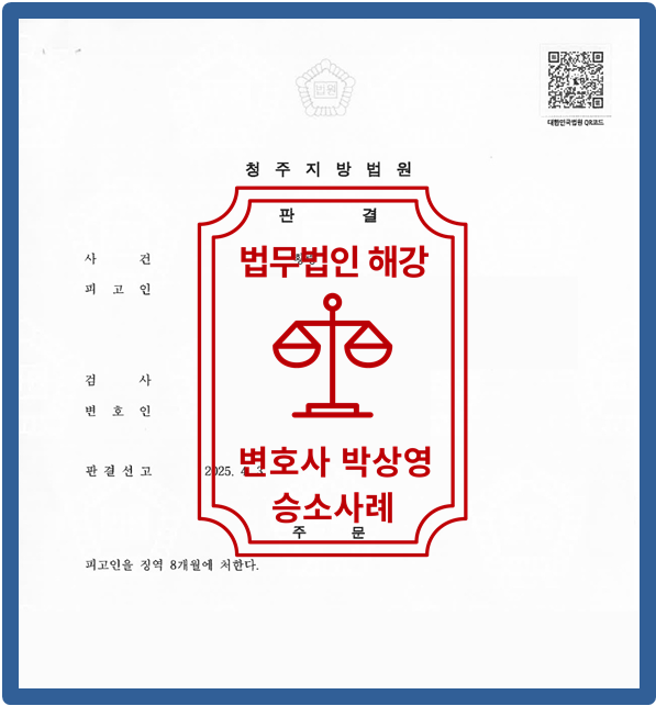저희 법무법인 해강은 법리적인 검토를 통하여 의뢰인 상황에 맞춘 변호인 의견서 등 작성을 통하여 의뢰인을 위해 최선을 다하였고 이에 [징역형]을 이끌어냈습니다.