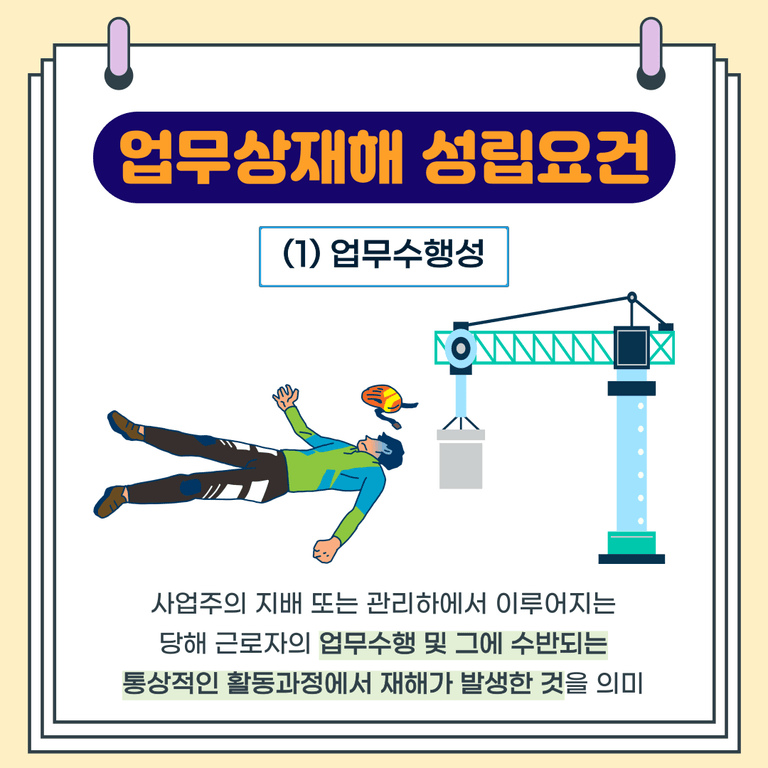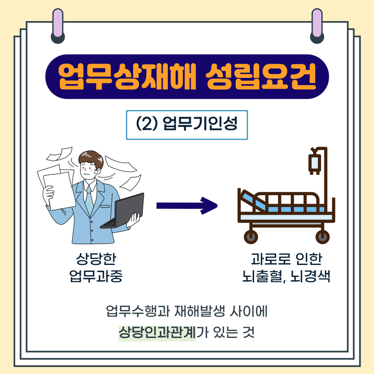 업무기인성이란, 재해가 업무에 기인한 것, 즉 업무수행과 재해발생 사이에 상당인과관계가 있는 것을 의미합니다.