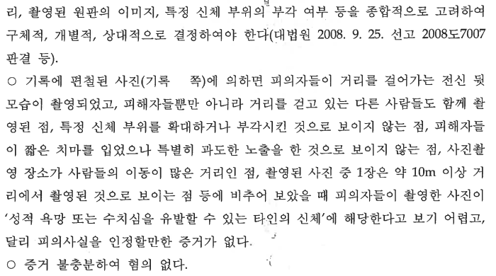 4. 그러나 촬영물을 보면 특정 부위를 집중하여 촬영한 것이 아니고, 다른 사람들도 함께 촬영되는 등 법리적으로 카메라촬영죄에 해당하지 않는 점을 변호인의견서로 어필한 끝에