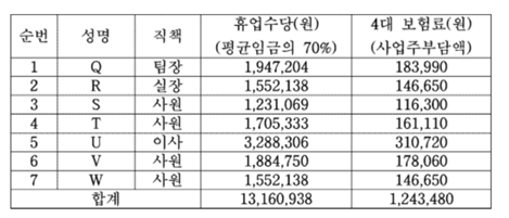2️⃣ 휴업수당 + 4대 보험료