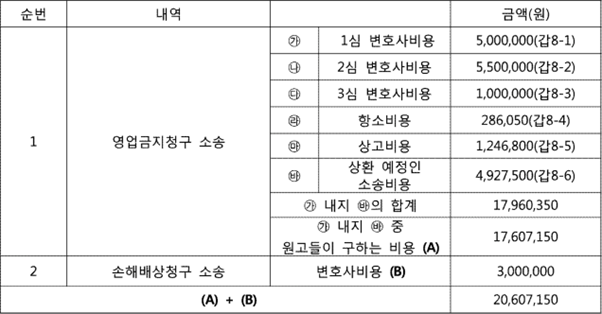 여기에는 1심, 2심, 3심 변호사비용뿐만 아니라, 항소비용, 상고비용, 상환예정 소송비용까지 포함된다.