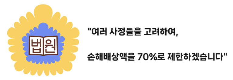 위 사례에서 총 손해액이 총 1억 원이라면 법원은 70%에 해당하는 7천만 원만 배상하도록 결정한 것이다.