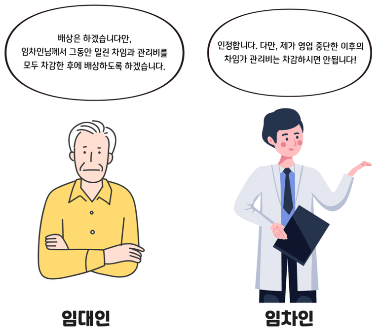 그러나 중요한 점은, 임차인이 영업을 중단한 이후의 차임과 관리비에 대해서는 상계할 수 없다는 것이다. 영업이 중단된 이후에는 임차인이 더 이상 점포를 사용하지 않기 때문에, 그 기간에 대한 차임과 관리비는 상계 대상이 되지 않는다.